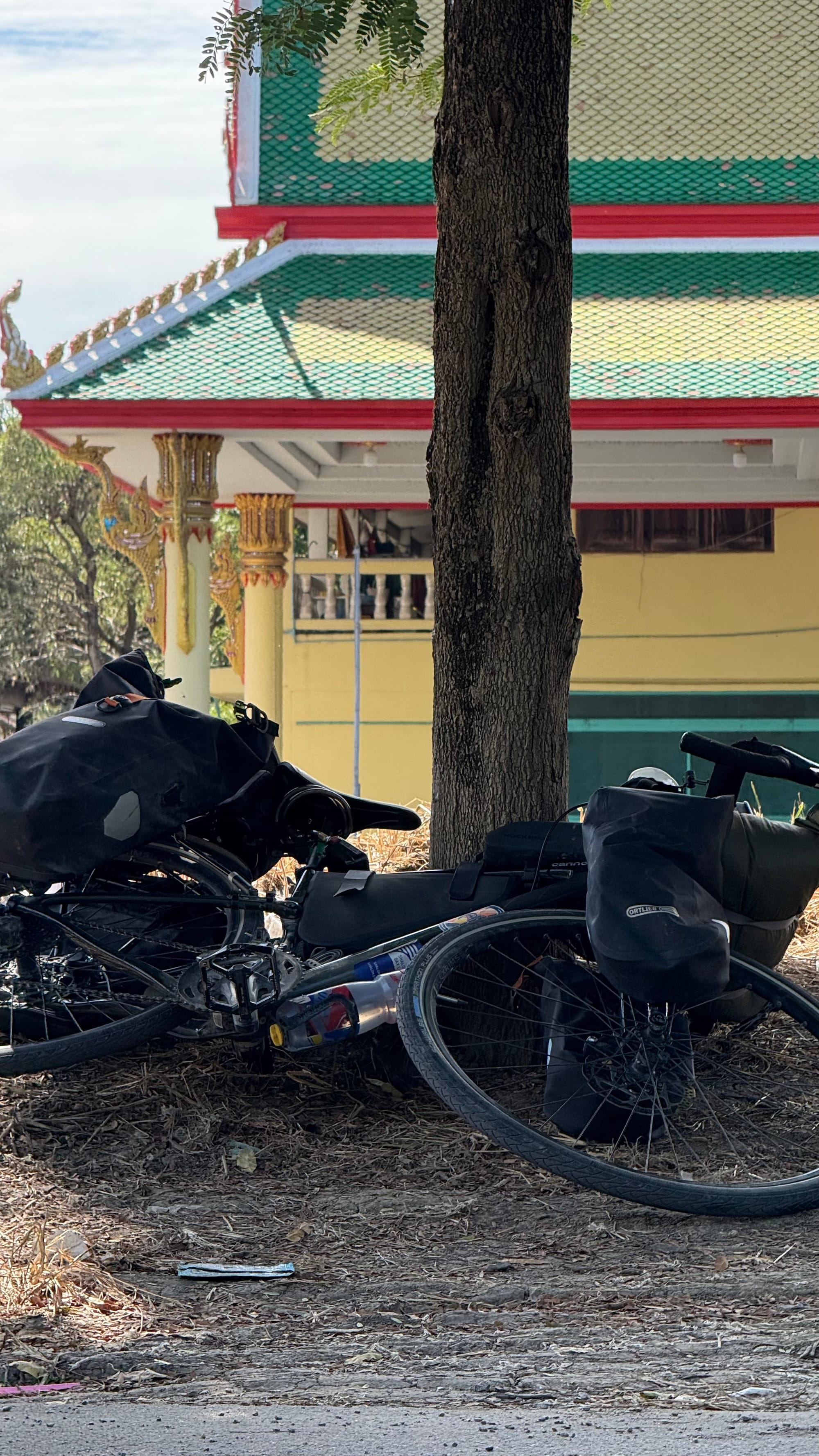68km에다가 평지라 금방 목적지에 도착했다. 숙소에 자전거를 올려다 놓은 후에 침대 위에다 텐트를 쳤다. 이러면 모기나 각종 벌레로부터 안전하게 잘 수 있다. 태국의 모기는 뎅기열, 말라리아 같은 전염병을 옮길 수가 있어서 특히나 주의해야한다.