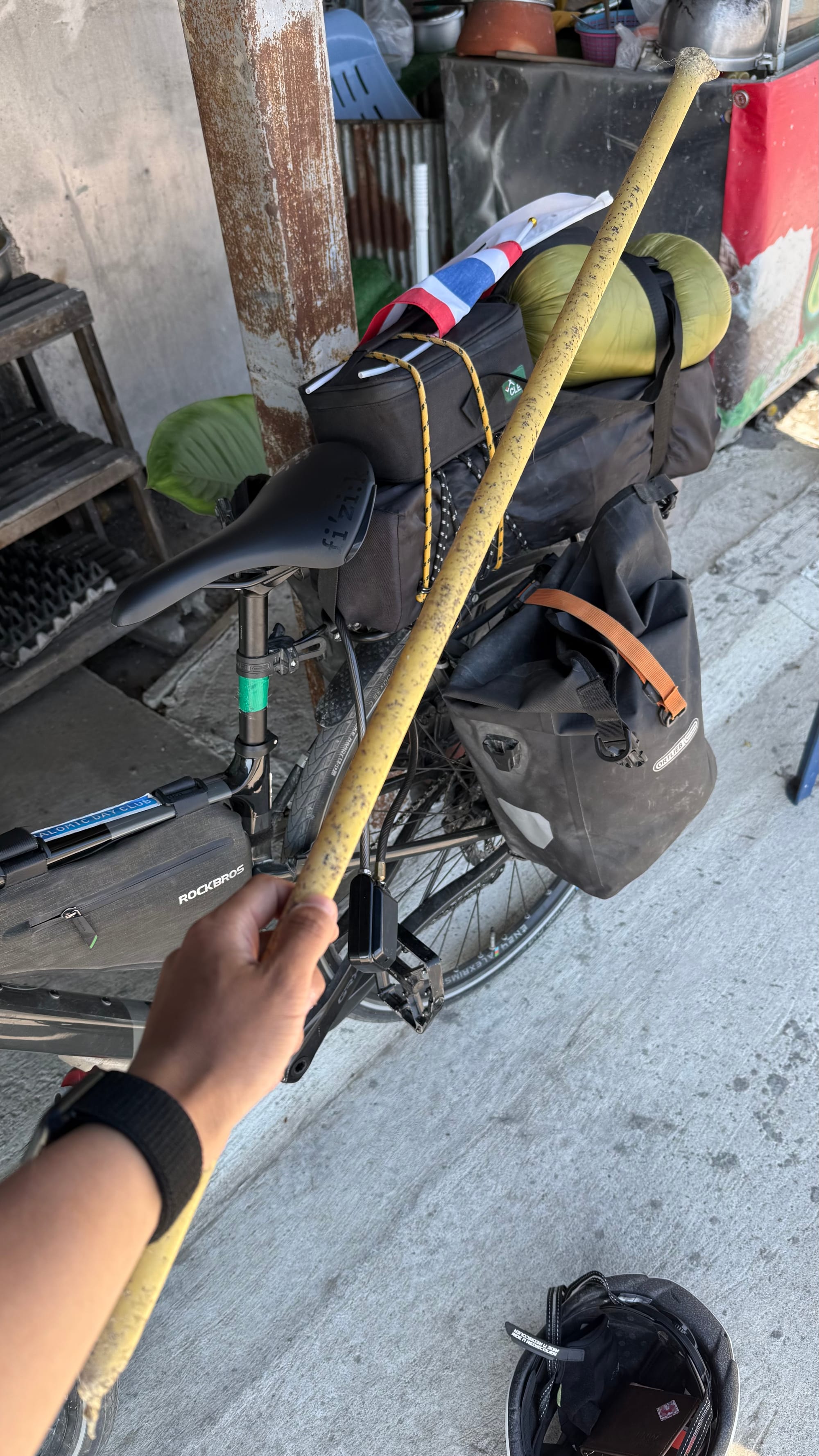 막대기가 있으니 심리적으로도 안정이 되었다. 위급 상황에서 무기로 사용할 수도 있고 개가 다가오지 못하게끔 거리 조절도 할 수 있으니까 이것 만큼 효과적인게 없겠다 싶은 느낌이 들었다. 그 후로도 아스팔트 길을 지나서 작은 마을처럼 보이는 곳에 들어간다 싶으면 막대기부터 꺼내들고 자전거를 탔다.