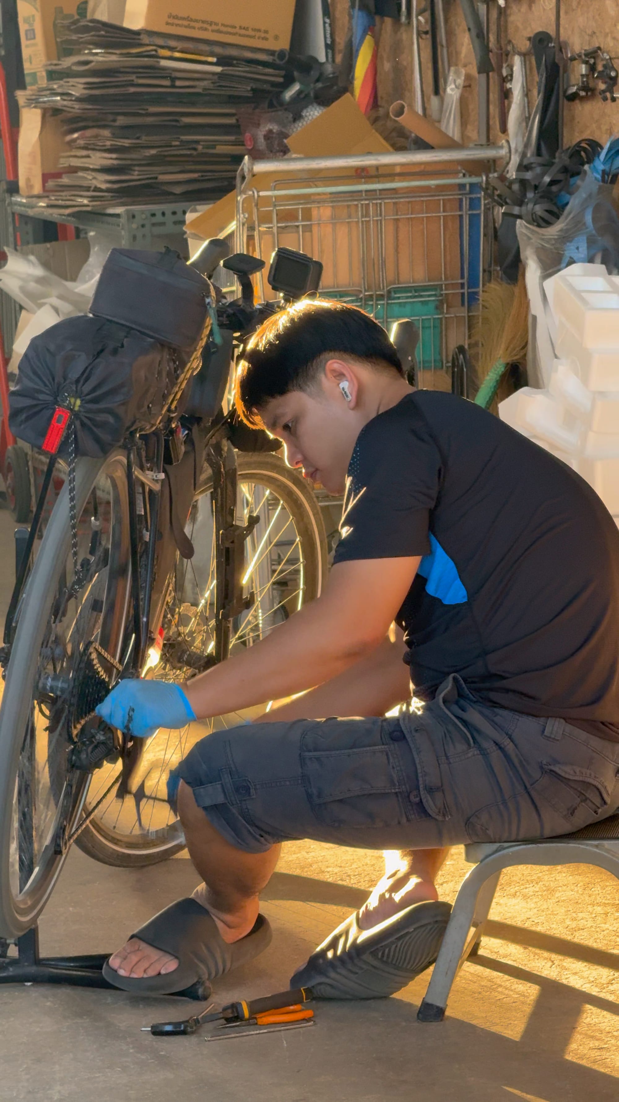 숙소에 짐을 풀고 자전거를 고치러 갔다. 오늘부터 갑자기 기어 변속에 뭔가 이상이 있어 혼자 고쳐보려고 낑낑대다 변속이 아예 안되는 지경에 이르렀다. 근처 바이크샵에서 고치고 얼마냐 물어보니 그냥 공짜라고 가라고 한다. 이게 바로 태국의 남짜이문화일까. 직역하자만 마음의 물. 우리나라의 정과 같은 개념인데, 자비심, 배려심 혹은 곤경에 빠진 남을 도와주려는 마음이라고도 한다. 여행을 할 때 이런 사소한 배려와 따뜻한 마음이 가장 기분 좋은 요소이다.