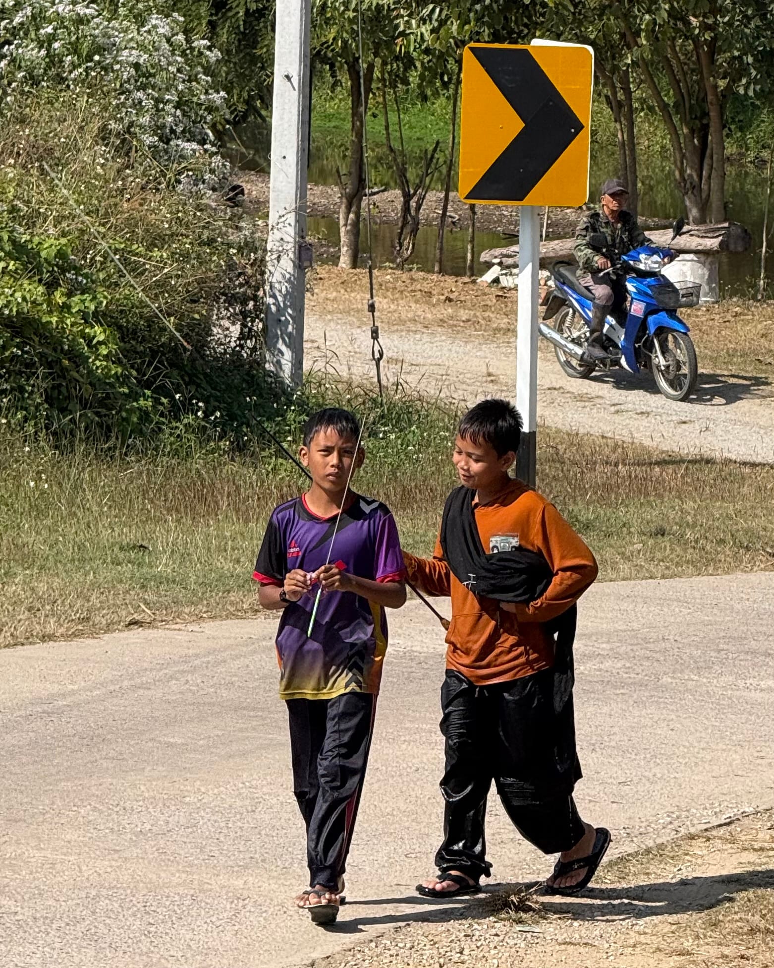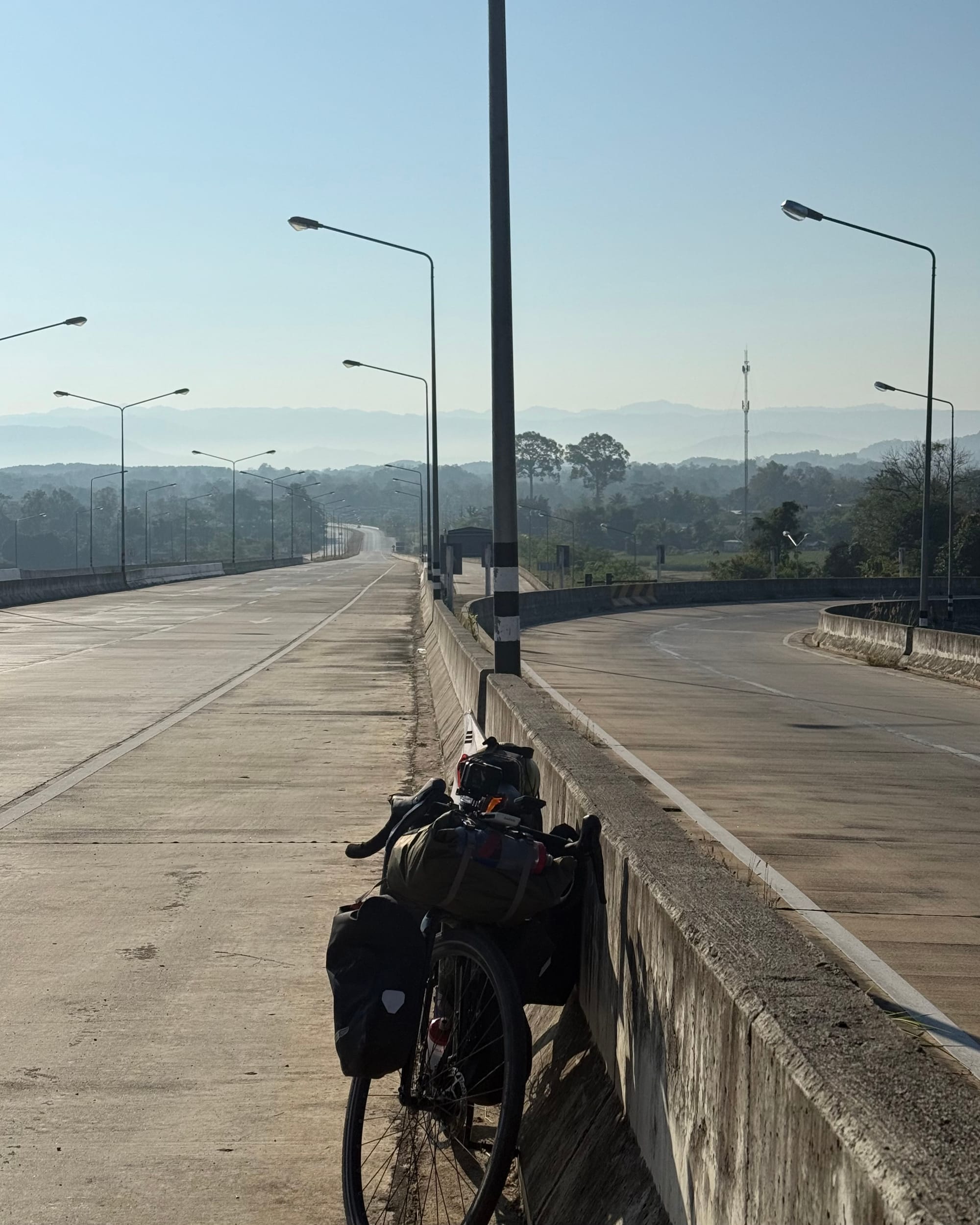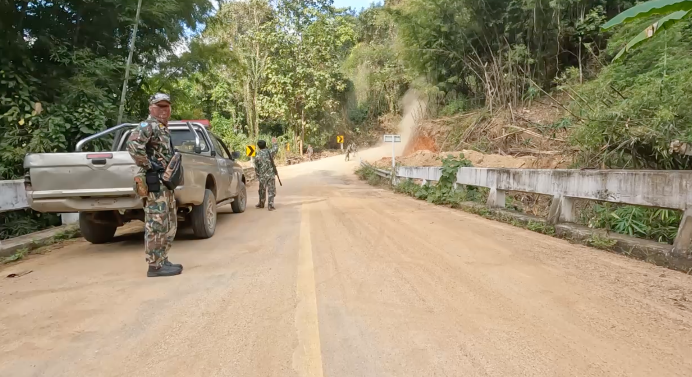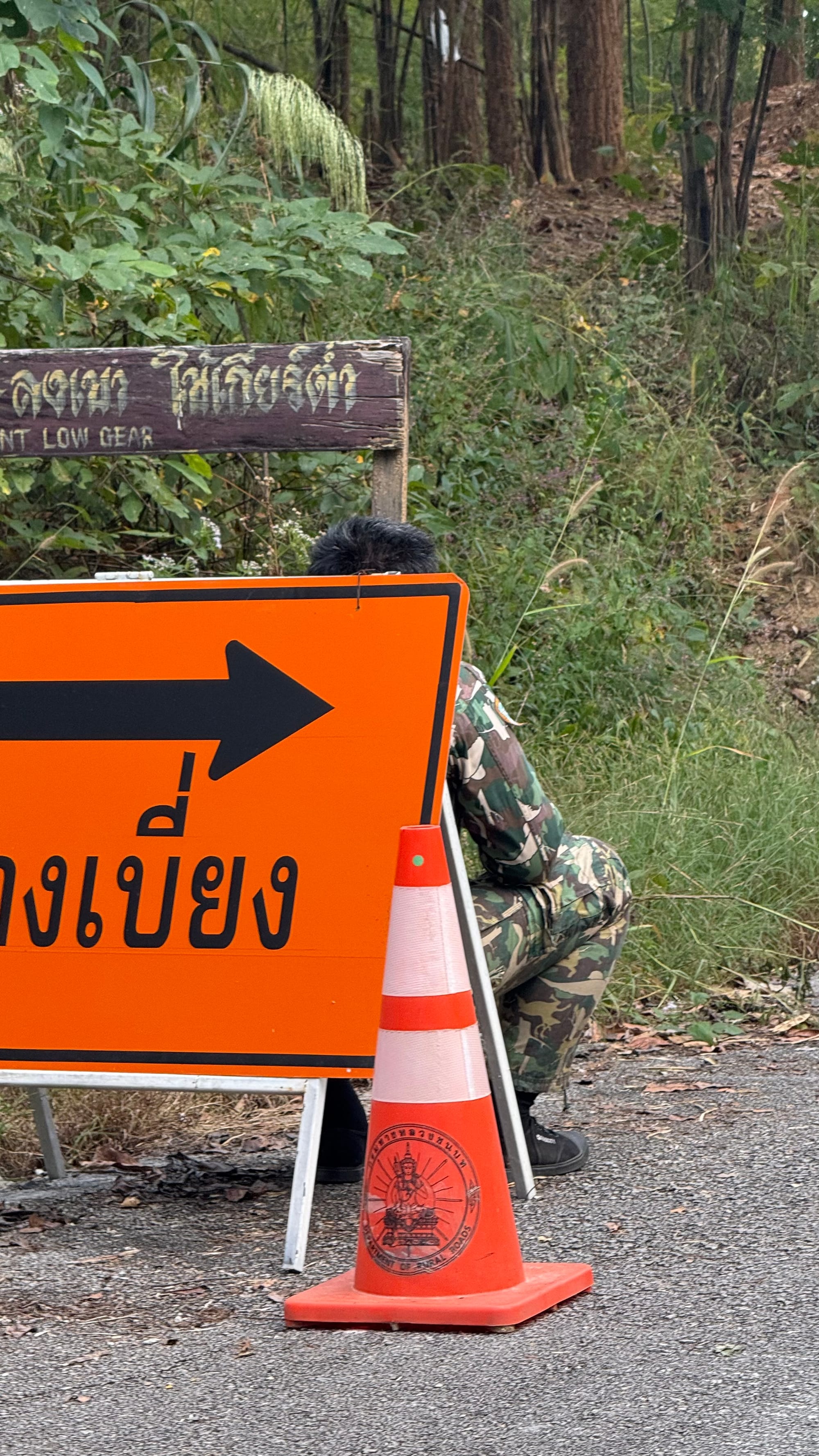 오늘은 어제보다 더 가파른 산을 넘어야 한다. 두 가지 길이 있는데 하나는 고속도로, 하나는 내가 넘는 산이다. 산 입구로 다가가니 군인들이 길을 통제하고 있다. 급경사가 지속되어서 무거운 화물차는 지나가면 안되기에 이렇게 지키고 있는 듯 했다. 태국은 군부독재의 나라라서 총을 들고 있는 군인을 마주치면 솔직히 좀 무섭다.