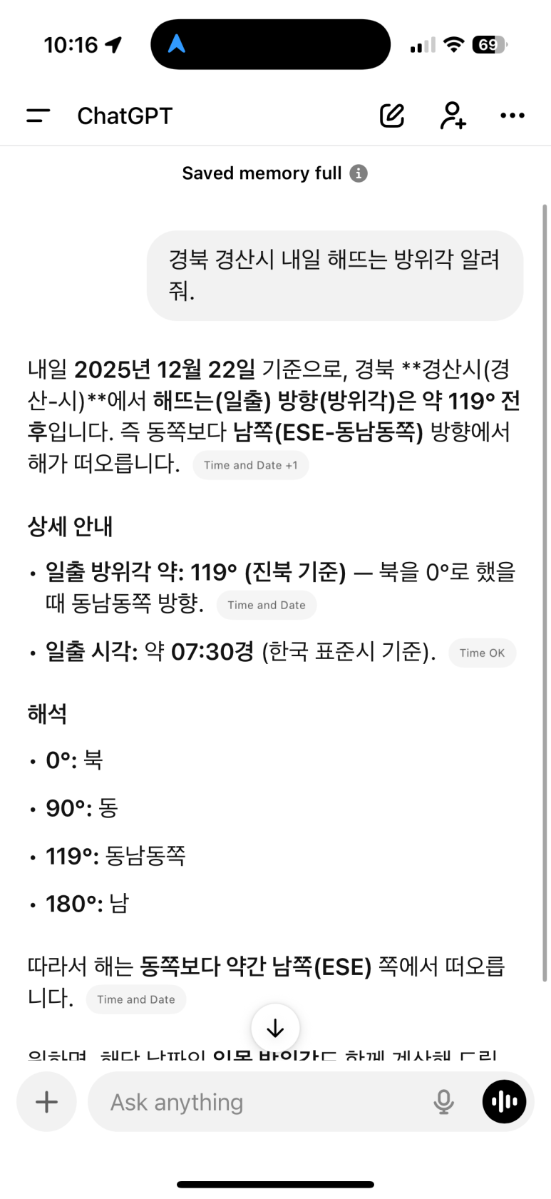 - 의외로 이 점이 중요하다. 해가 뜨는 방향은 ChatGPT나 구글 제미나이에다가 내가 있는 지역의 내일 아침 해가 뜨는 방위각을 알려달라 하면 된다. 만약 인터넷이 안된다면 이렇게 생각해 보자.