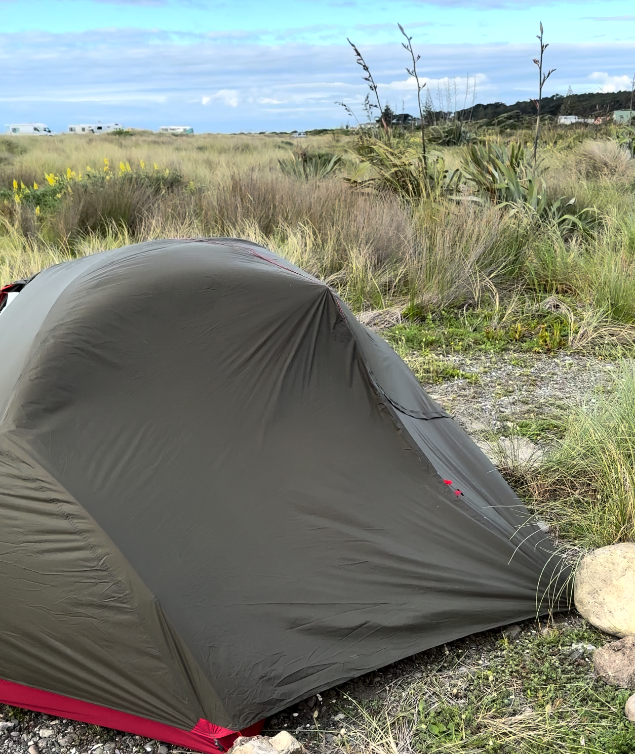 많은 사람들은 대게 풍경이 아름다운 곳에 텐트를 치려고 한다. 하지만 자전거 여행자들은 아름다운 풍경은 라이딩을 하면서 실컷 즐겼기 때문에 아름다운 풍경의 여부는 내가 고려해야 할 요소 중 많이 하단에 위치한다. (사진 찍기 좋은 위치는 사실 나도 탐이 난다.) 푹 쉴 수 있는지 여부가 가장 중요하다.