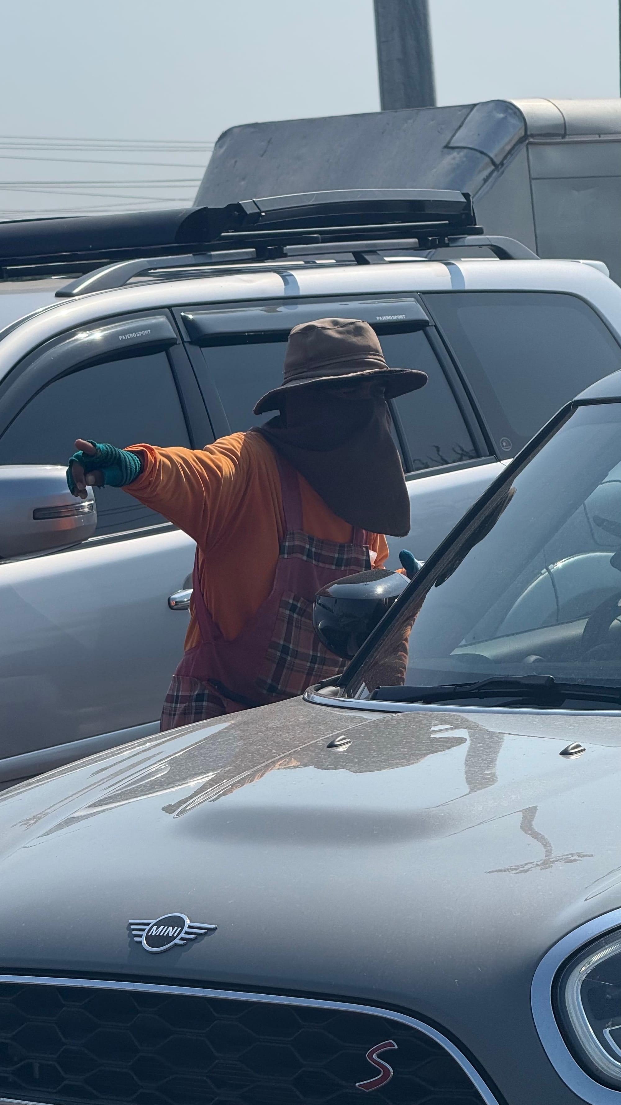 멈춰 선 차에게 뻥튀기 비슷한 걸 파는 사람들도 있다.