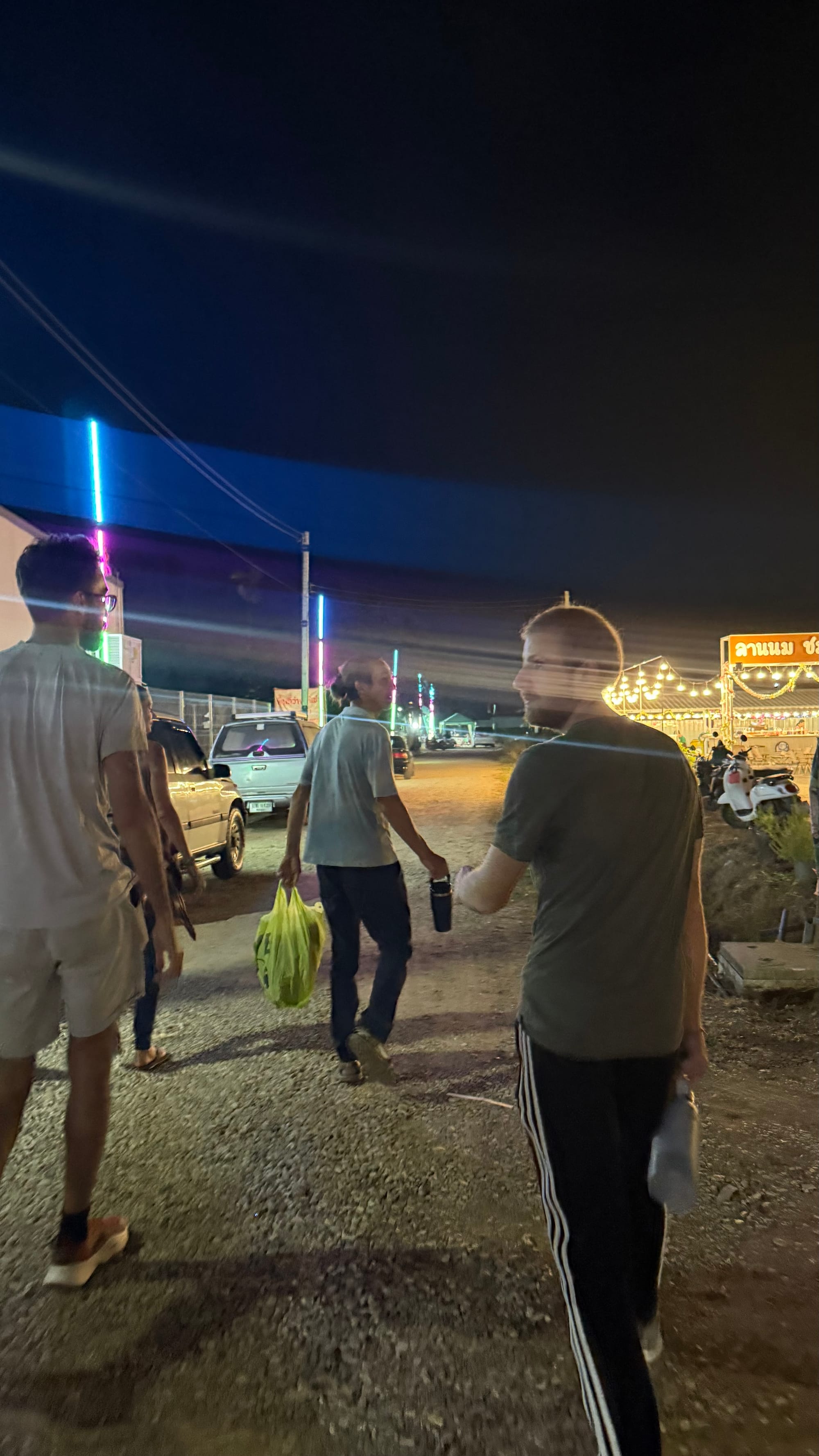 함께 식당에 가서 저녁을 먹는데 호스텔 게스트가 아닌 사람들도 삼삼오오 모여들었다. 국적도 다양하다. 일본, 폴란드, 미국, 영국, 체코 등. 이 중에 영국인 John은 오늘 무에타이 마지막 경기를 직접 뛰는 참가자라고 한다. 함께 툭툭이를 타고 무에타이 경기를 보러 갔다. 사람이 북적이고 에너지가 끌어넘친다. 어린이 경기부터 여자, 청소년, 성인 경기 할 거 없이 진행되었다. 유독 리액션이 좋은 사람들은 아마 돈내기를 한게 아닐까?