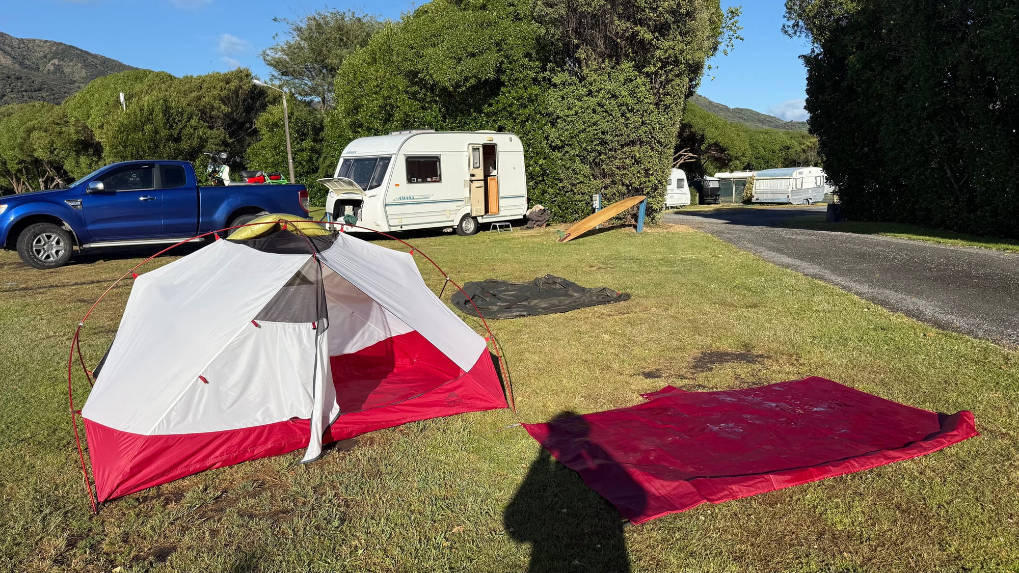 안전한 곳에 텐트를 치고 마음 편하게 있는데 어느 순간 수십명의 사람이 캠핑장 안으로 몰려든다. 주방에 가니 다과를 준비하고 계시길래 여기 파티하냐고 물었다. 파티는 아니고 이 캠핑장에 마오리족의 상징물들을 만들어서 그것을 기념하고 축복(blessing이라 했다.)하는 행사라고 한다. 일종의 집들이나 개업식 비슷한거인 모양인데 그것에 전통적이고 종교적인 의미가 가미된 것이라고 보면 될 거 같다.
