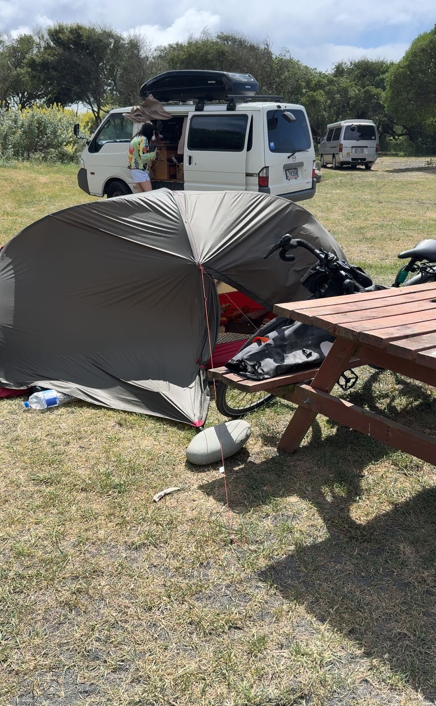 내일은 여기로부터 190키로 가량 떨어진 크라이스트처치 근처 마을에 사는 웜샤워 호스트 집에 묵을 예정이라 오늘은 그 중간 어딘가에 있는 Waiau라는 마을에 있는 캠핑장이 목적지이다. 펍의 주인이 캠핑장을 같이 운영하는데 무료로 제공을 한다.