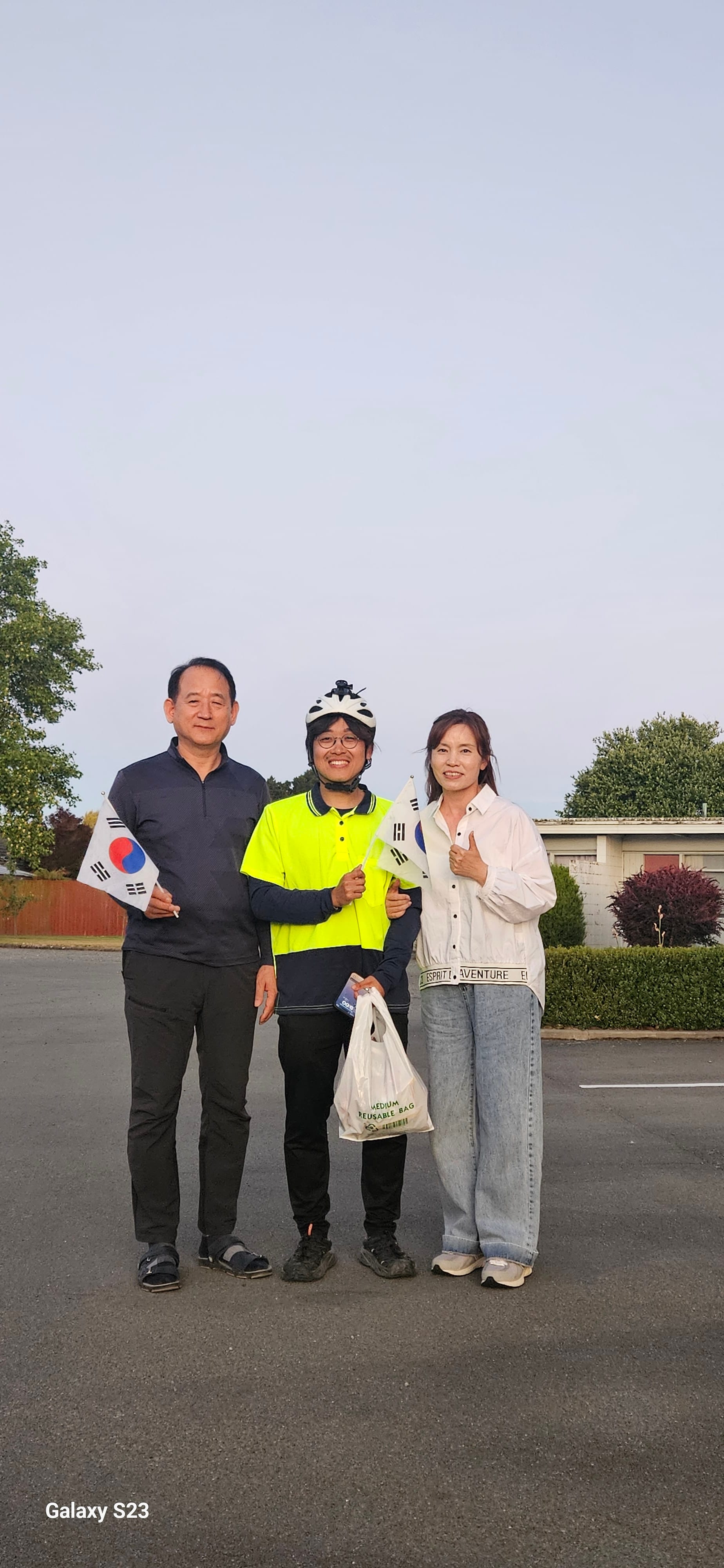 자전거를 타고 내 숙소로 돌아가야 하기에 아쉬움을 뒤로한 채 너무 어두워지기 전에 출발했다. 숙소 입구에서 어떤 아주머니 한분이 태극기를 보고 “코..코리아!”라고 소리치셨는데 옆에 있던 아저씨분이 “대~한민국!”이라고 외치신다. 민망하고 웃긴 마음에 “안녕하세요”라고 인사했다.