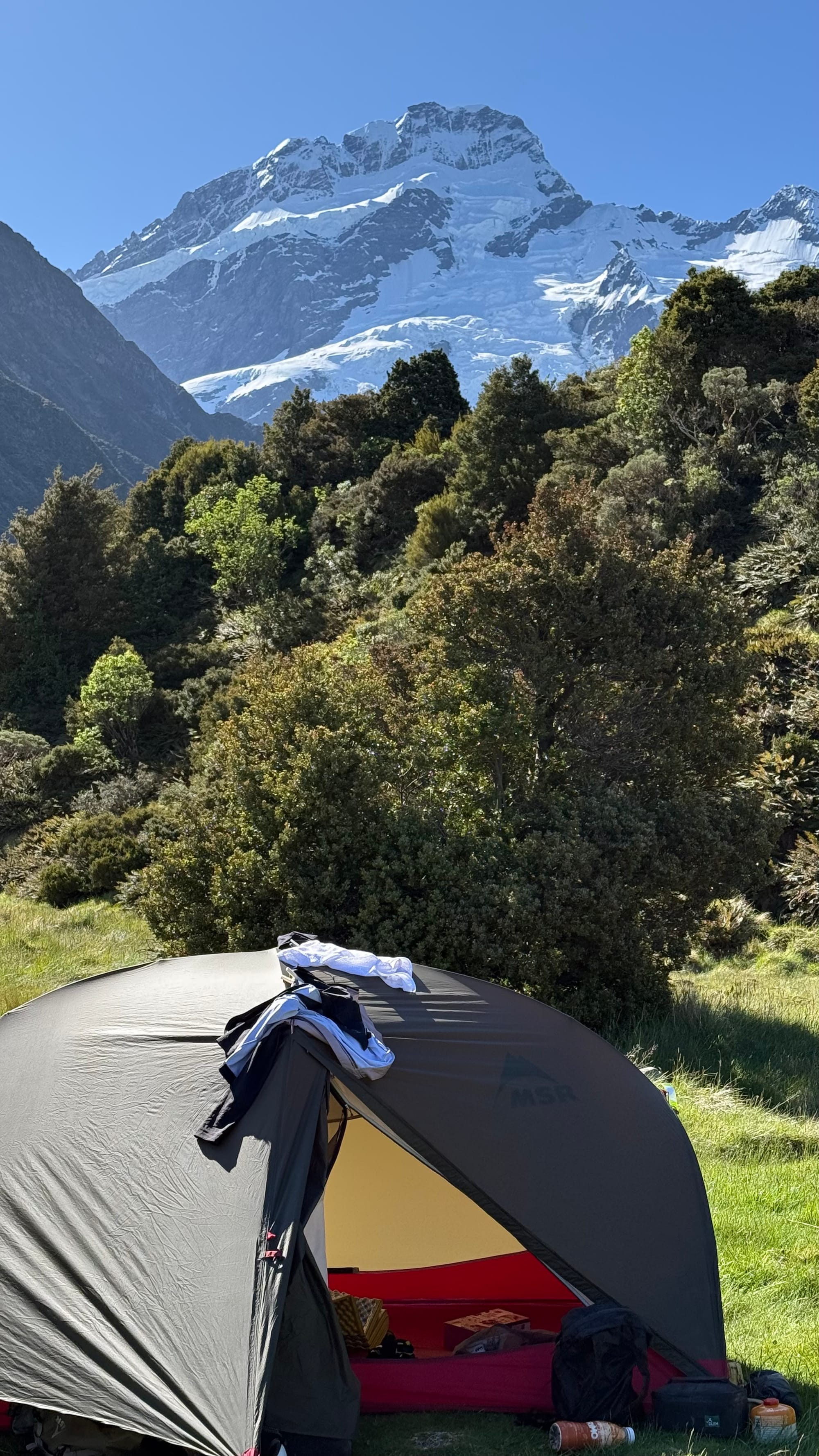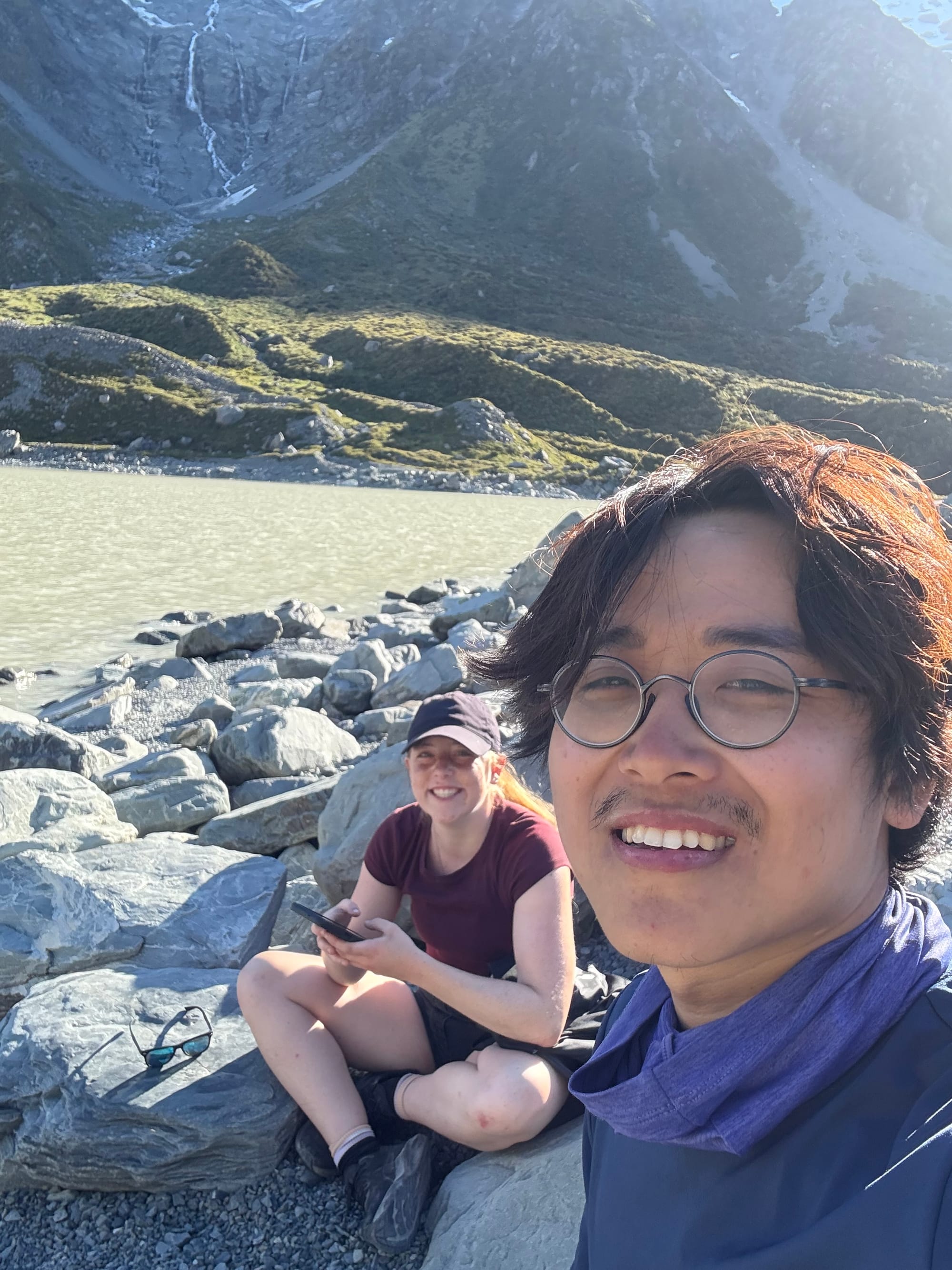 다행히 나도 결제를 마치고 그 근처에 텐트를 쳤다. 나 정도 규모의 텐트는 캠핑장 예약이 가득차도 구석탱이 어디에서든 자리를 마련할 수 있다. 이 친구는 어제 후커밸리 트래킹을 마쳤고 오늘은 옆에 더 가파른 트래킹을 하고왔다고 한다. 오후 5시 넘어서 후커밸리 트래킹을 한번 더 할거라길래 같이 가기로 했다. 해가 뉘엇뉘엇할때가 훨씬 더 좋다고 한다.