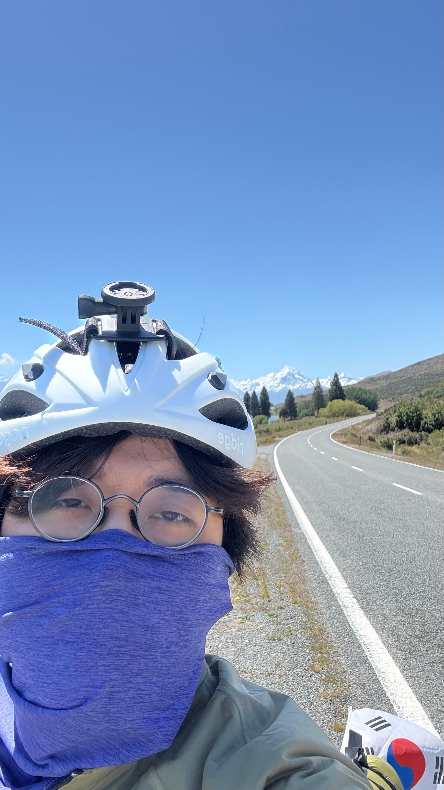어제 마운트쿡에는 딱히 음식을 살 곳이 없어서 오늘은 엄청 배가 고픈 상태로 달렸다. 달리면서 “아 배고파!”라고 한참을 소리지르면서. 가방에 신라면이 하나 있었는데 중간에 있는 쉘터에서 부셔서 먹었다. 먹고 있을 때 인도인 한명이 다가와서 자기도 자전거 여행을 좋아하는데 인스타그램 아이디를 알려달라고 해서 알려주었다. 팔로워가 한명 늘었다.