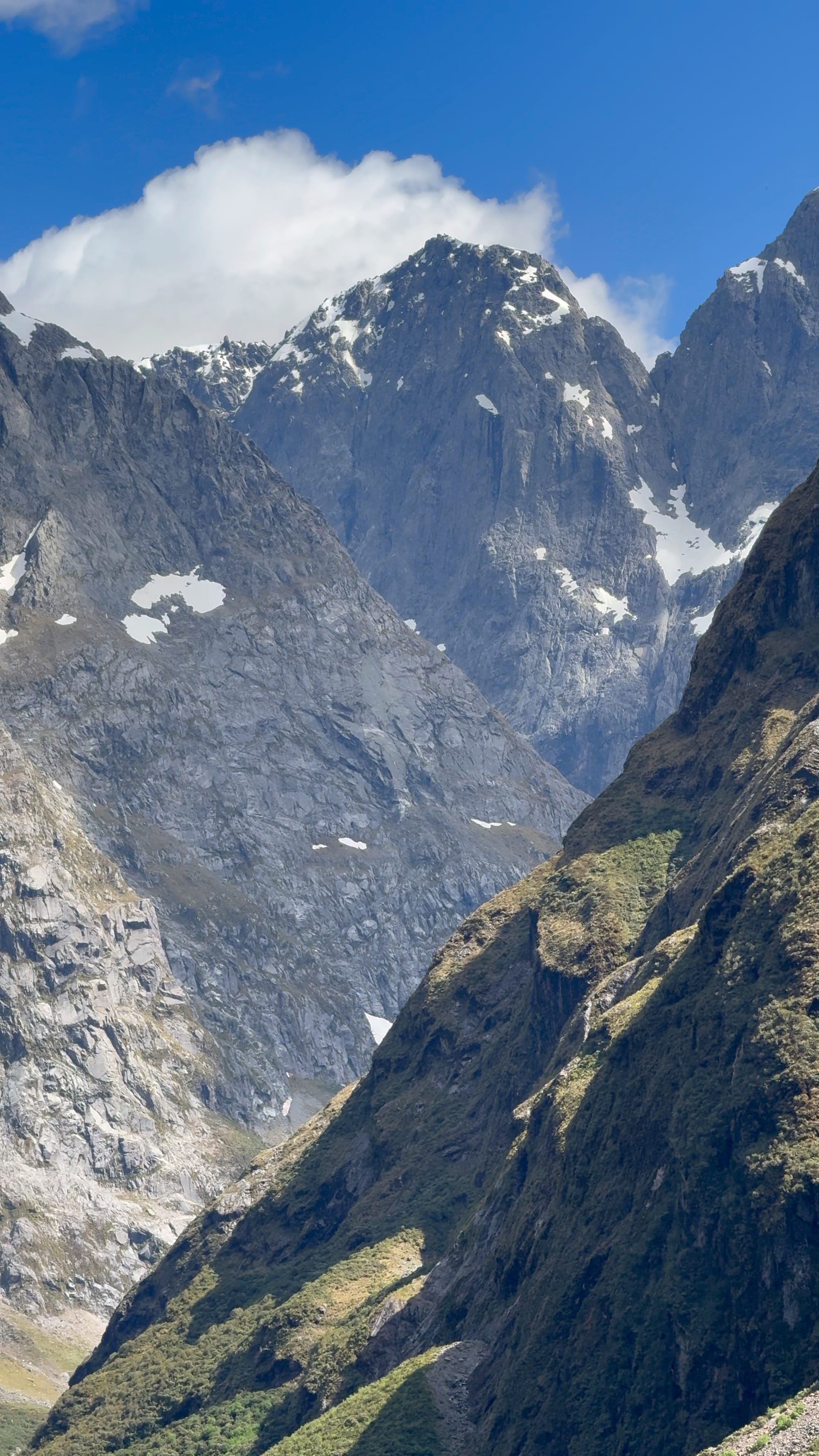 이 곳을 끝내고 이제 밀포드 사운드로 향했다. 세계 8번째 불가사의라고도 불리는 밀포드 사운드. 가는 길부터가 압도적이고 장엄하다. 이 곳은 연중 200일 정도 비가 내리기 때문에 자전거를 타고 들어가기가 힘들다. 가장 가까운 마을(역시나 중간에 아무것도 없다.)인 테아나우에서 밀포드 사운드까지의 거리는 100km 정도가 되기 때문에 정말 큰 맘을 먹지 않는 이상 자전거로 들어가기가 매우 힘들다.