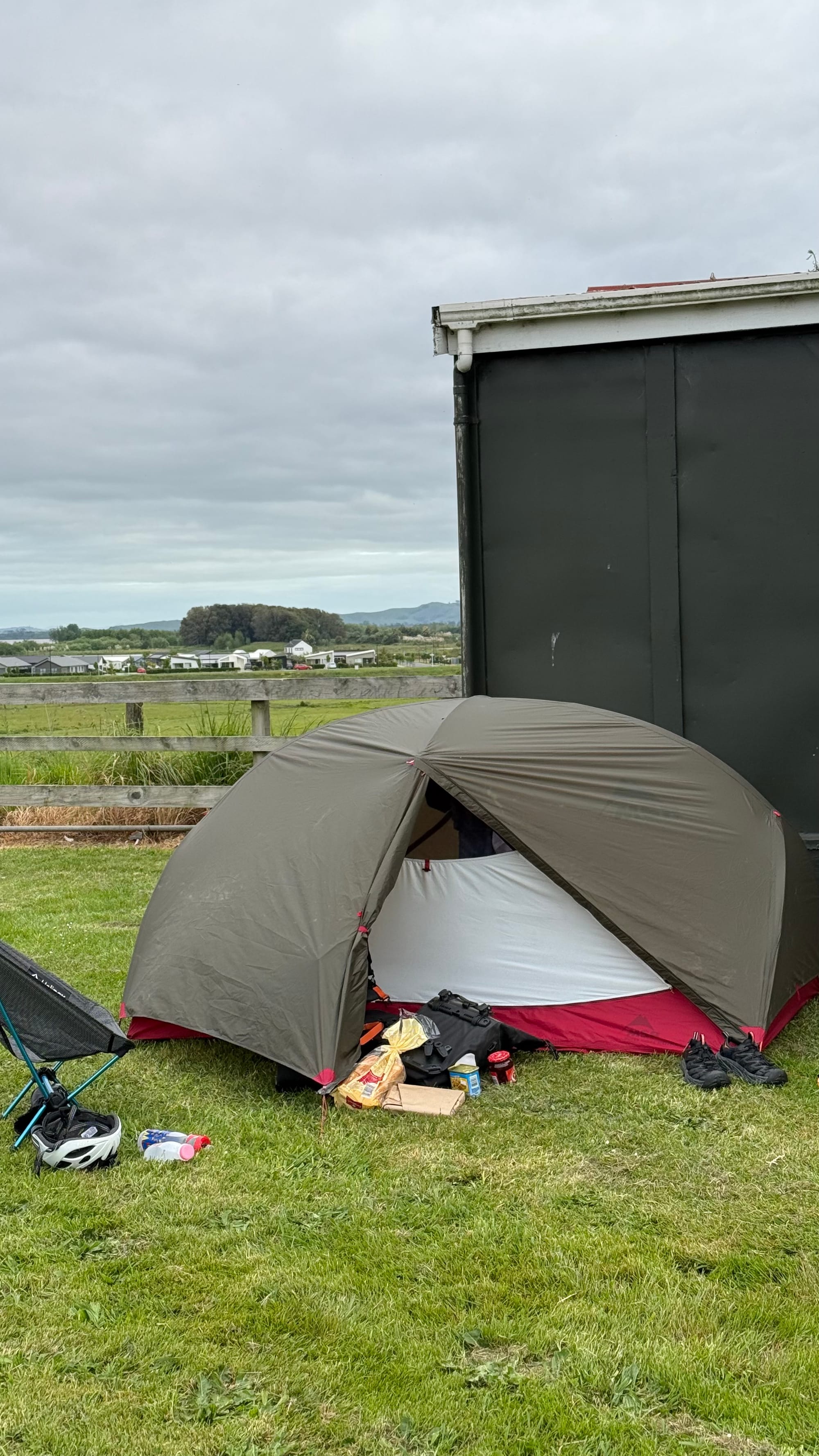 바보도 이런 바보가 없다. 첫날부터 쉽지않다. 이미 오후 3시가 넘었기에 이대로 가면 78km를 더 타야 하는데 절대 해지기전에 캠핑장으로 도착하지 못한다. CamperMate(호주, 뉴질랜드 캠핑장 알려주는 APP)를 켜서 주변 캠핑장을 찾아갔다. 오클랜드 안에 있는 캠핑장인데 샤워실은 없지만 가격도 저렴하고 시설도 아주 깨끗하다. 나중에 알고보니 DOC(정부운영캠핑장)이었다. 무엇보다 동물 옆에서 잘 수 있다는게 참 맘에 들었다. No Fire 캠핑장이라 시내 식료품점에서 사온 신라면을 그냥 부셔먹었다.(No fire 캠핑장도 대부분은 캠핑가스를 사용한 음식 조리는 허용된다는 사실을 이때는 몰랐다.)