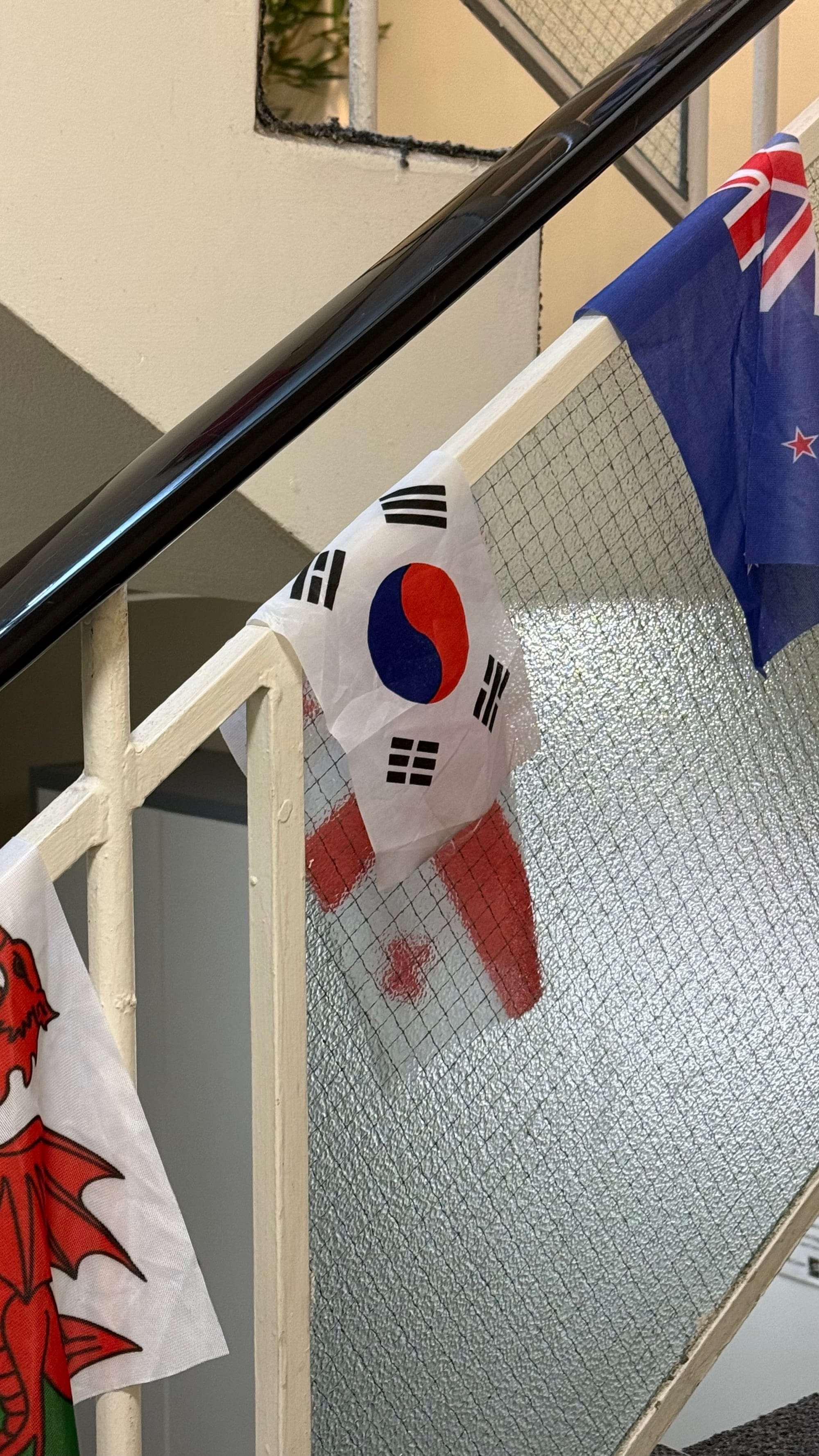 중간에 있는 한국인 아저씨를 크라이스트처치에서 다시 한번 만났다. 호스텔에 태극기가 없어서 하나 기부했다.