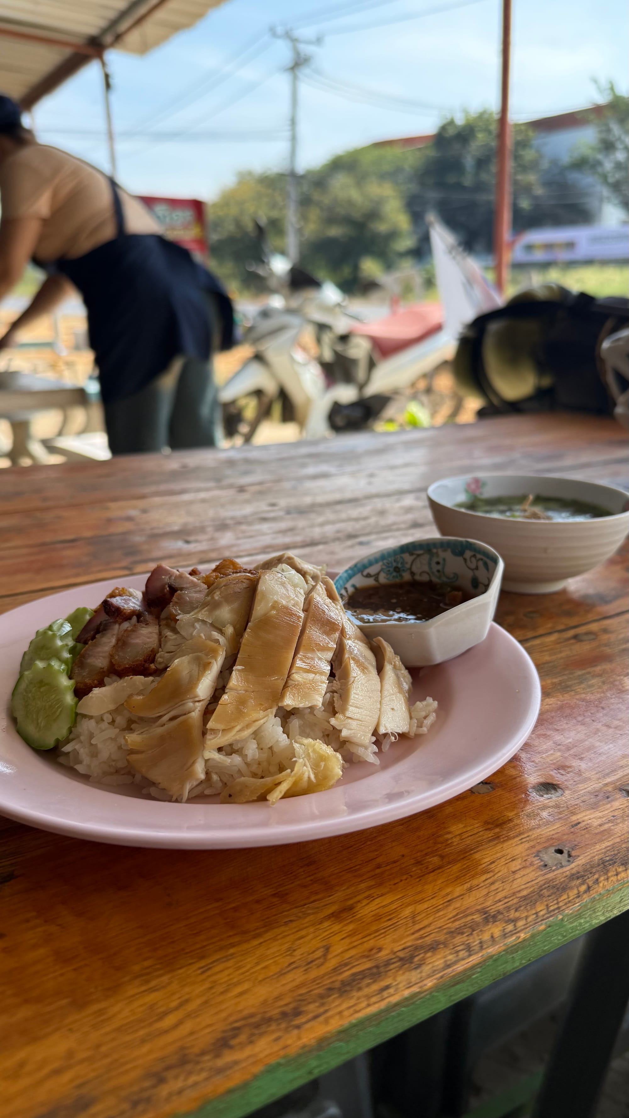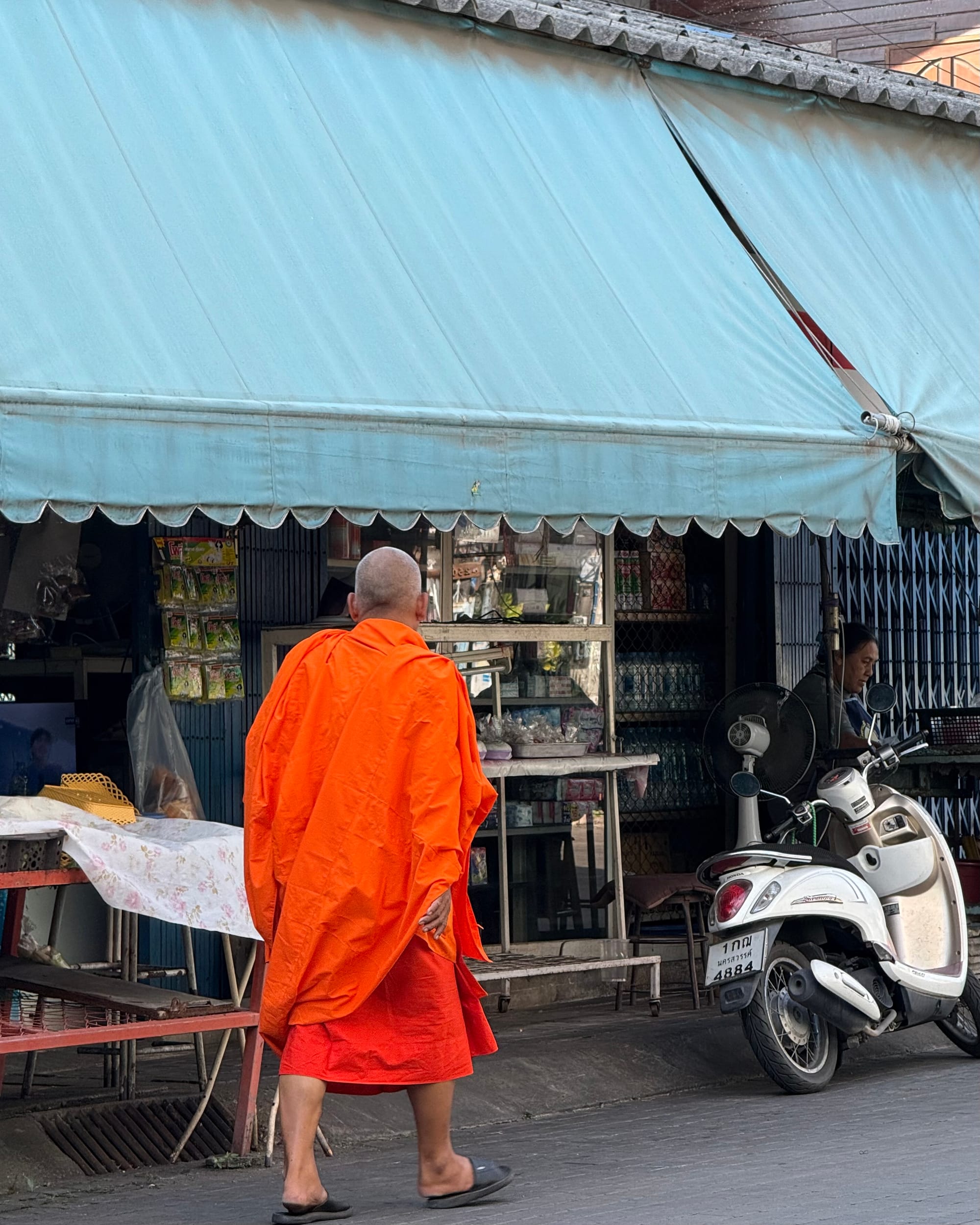 여행 경로를 항상 즉석해서 결정하고 있다. 현재위치를 찍어보고 북쪽에 있는 마을 중 숙소가 있을 법한 느낌의 마을 하나를 찍어서 그리로 간다. 여기 태국에선 식량, 물과 같은 보급문제를 신경 쓸 필요가 없다. 도로 중간 중간에 휴게소도 많고 길거리 상인들도 많기 때문이다. 얼마전 유튜브와 인스타그램과 같은 소셜미디어에서 "강한 자만이 살아남던 90년대" 밈이 한창 유행한 적이 있다. 험난한 놀이터, 8차선 도로 무단횡단, 중앙선 침범하는 차들같은, 아직 사회 제도와 체계가 제대로 자리 잡기 전의 우리나라를 풍자하는 밈인데 여기가 딱 그런 느낌이다. 수십년 뒤에 태국인들 스스로가 이 때를 '낭만의 시대'였다 라고 회상할 지도?