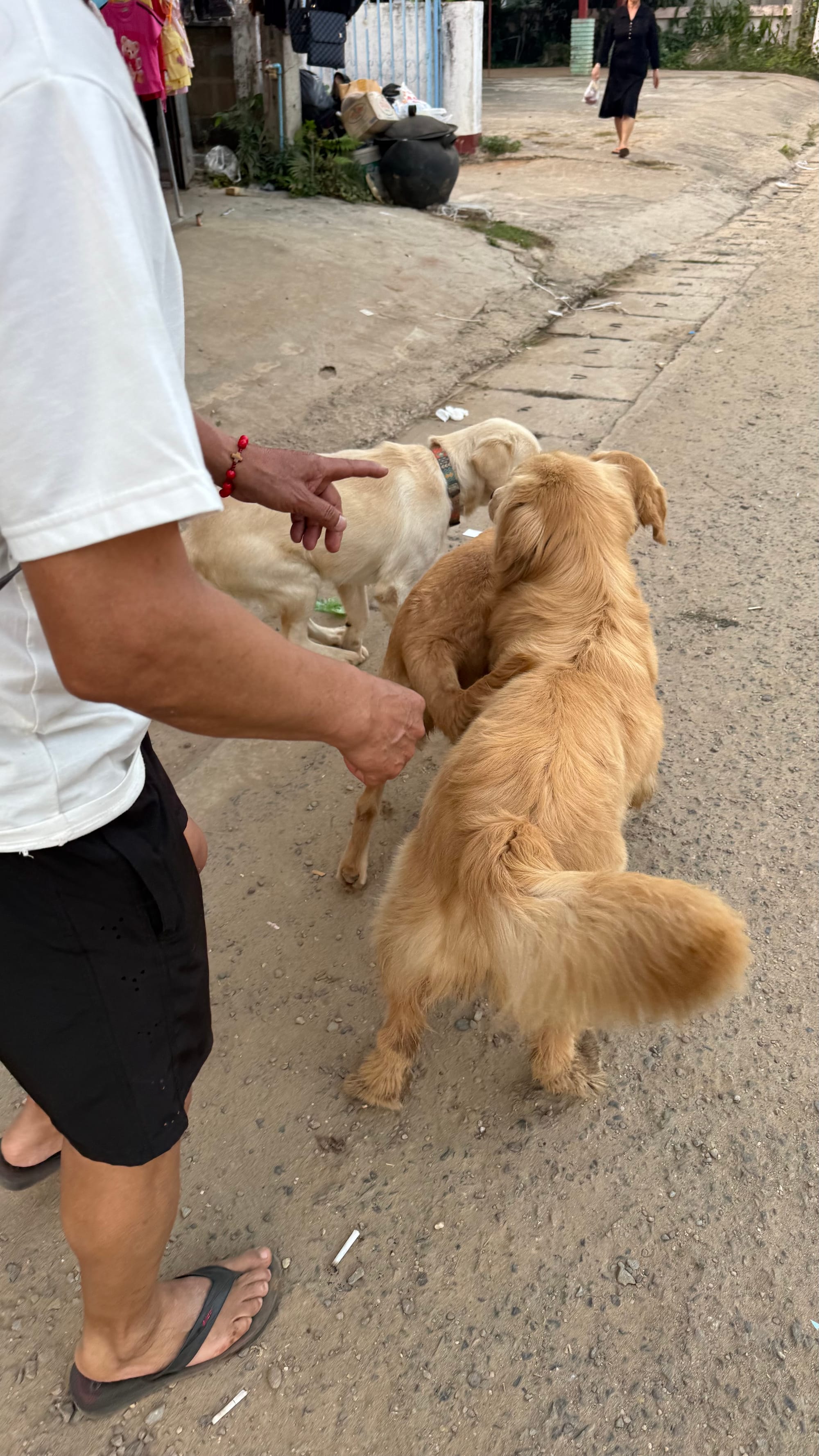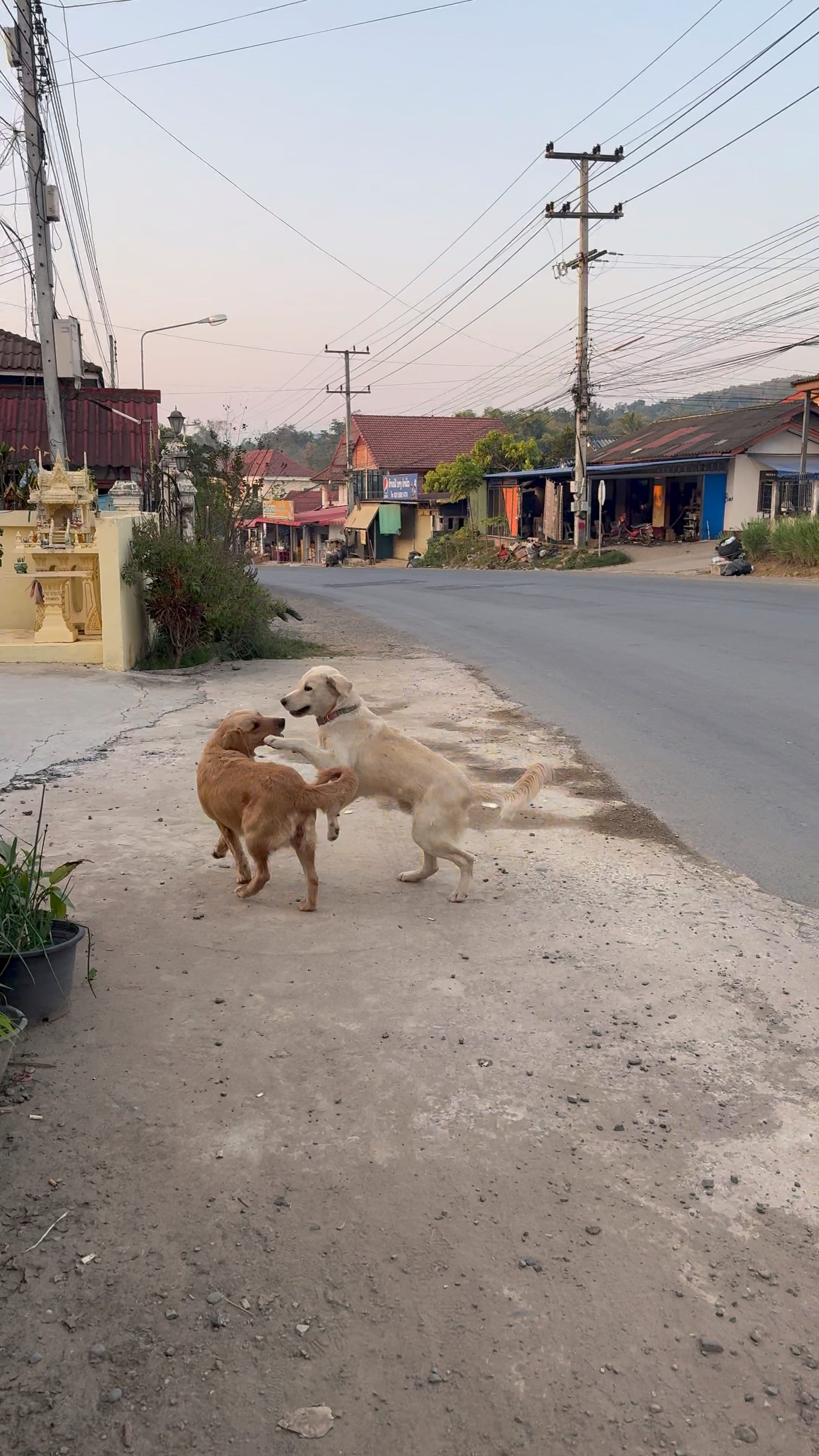아저씨랑 밥 사먹으러 가는 길. 국경 하나 넘었다고 개들이 저렇게 온순해졌다.