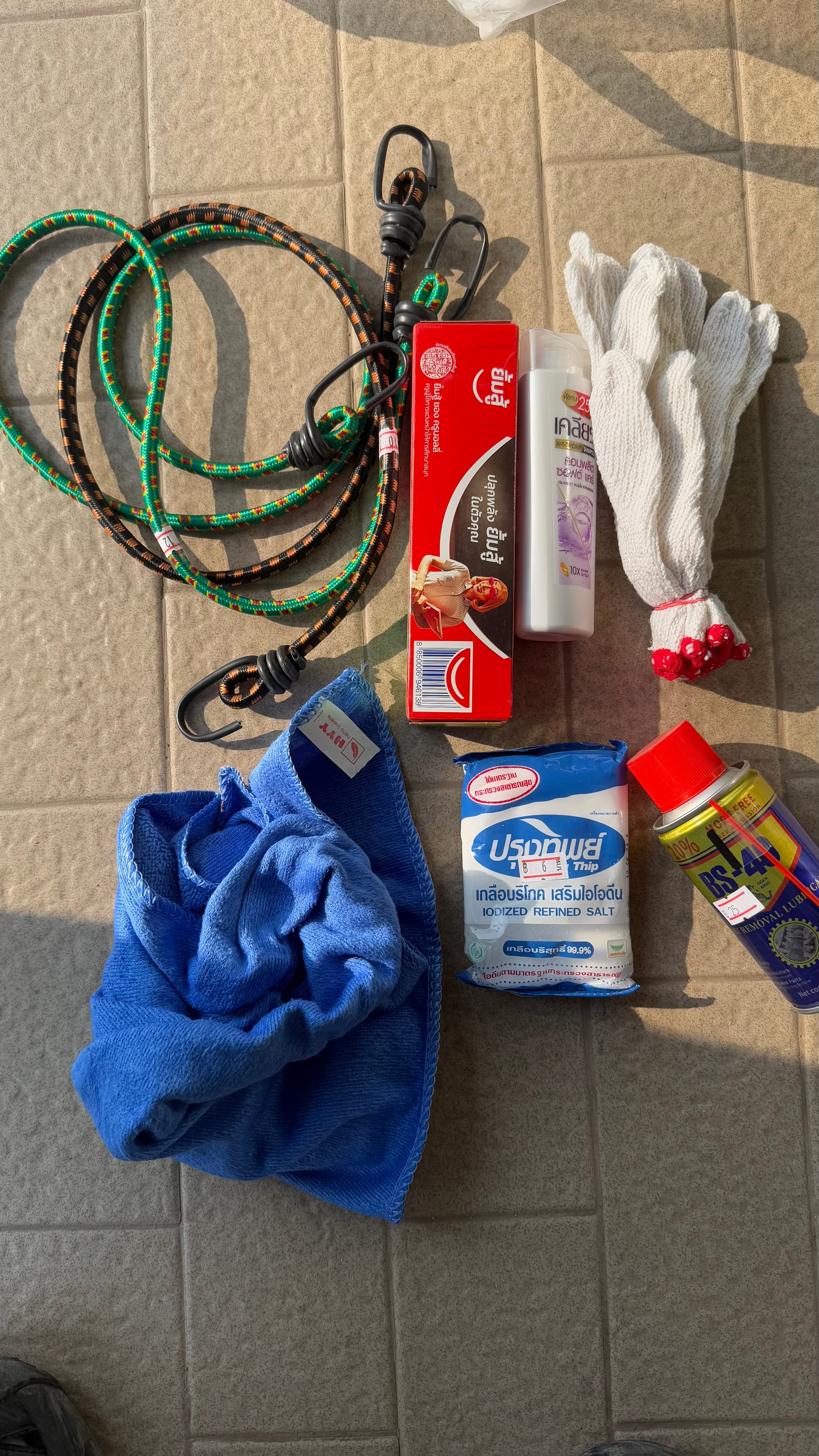 오늘은 대망의 국경을 넘는 날이다. 치앙콩 시내로 들어가서 아침을 먹고 철물점 비슷한 곳이 있길래 구경할겸 들어가봤는데 이 정도 규모의 없는 물건 빼고 다 있는 상점을 태국에서 처음 봤다. 뉴질랜드의 warehouse, 우리나라의 다이소 느낌인데 분위기는 철물점의 느낌과 가장 가깝다. 거기서 WD-40 모방 상품 BS-40과 노가다 목장갑, 소금 등등 필요한 것을 좀 샀다. 인간이 소금을 먹지 않고 물만 먹으면 온 몸이 퉁퉁 부어오른다. 혹시 라오스에 나트륨을 섭취할 수 없는 구간이 나올 수도 있을 거 같아서 비상용으로 구매했다.