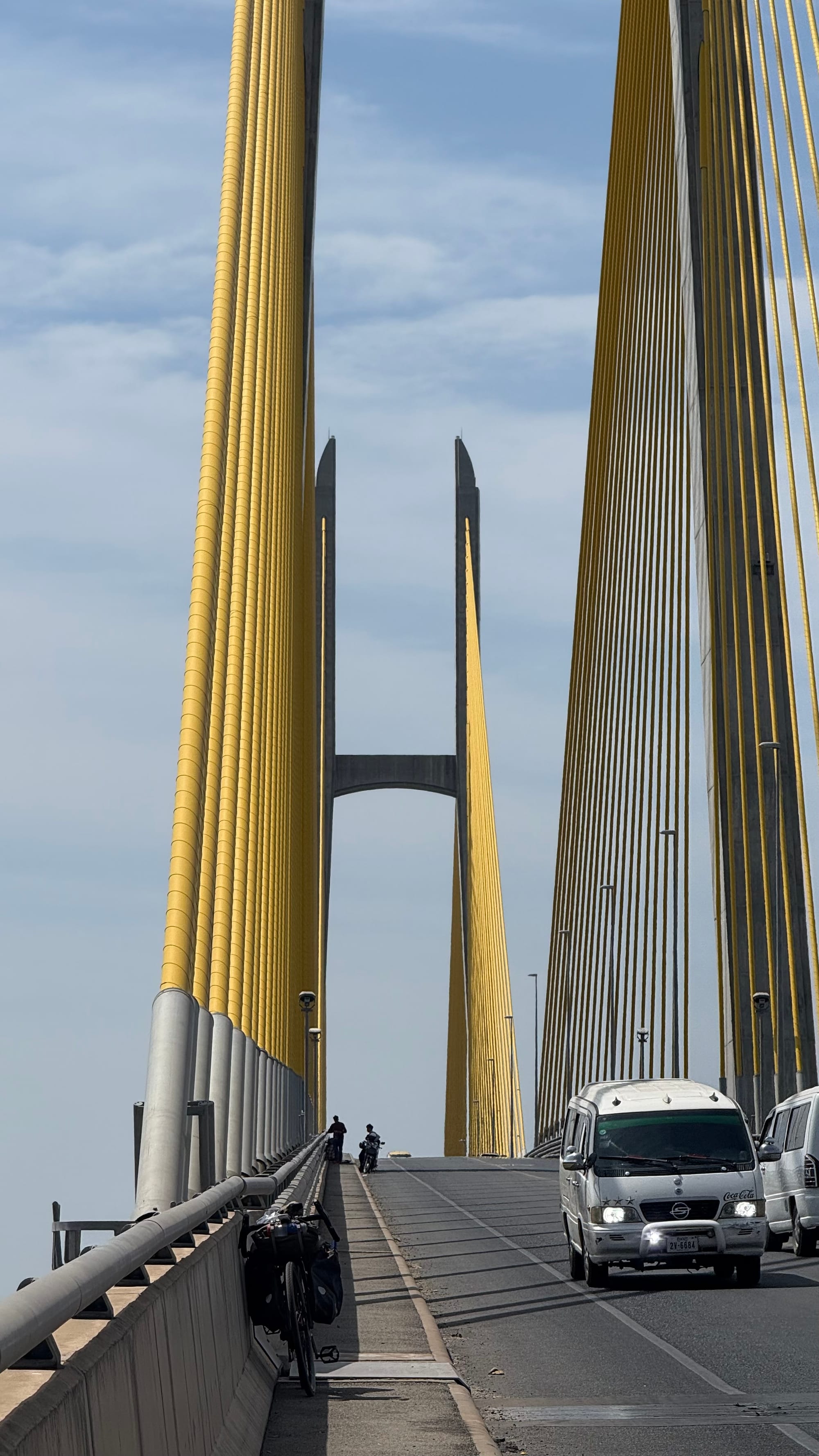 프놈펜을 빠져나가면서 새삼 라오스의 수도보다 캄보디아의 수도가 훨씬 발전 되었다고 느껴진다. 높은 건물들 하며, 멋진 다리하며 그나마 수도라서 볼 게 좀 있다. 프놈펜부터 호치민까지는 터키부터 일본까지 연결되는 아시안하이웨이 1번 노선의 일부인 국도 1번을 타고 간다. 이름답게 포장이 잘 되어있고 차량 통행량이 많다.