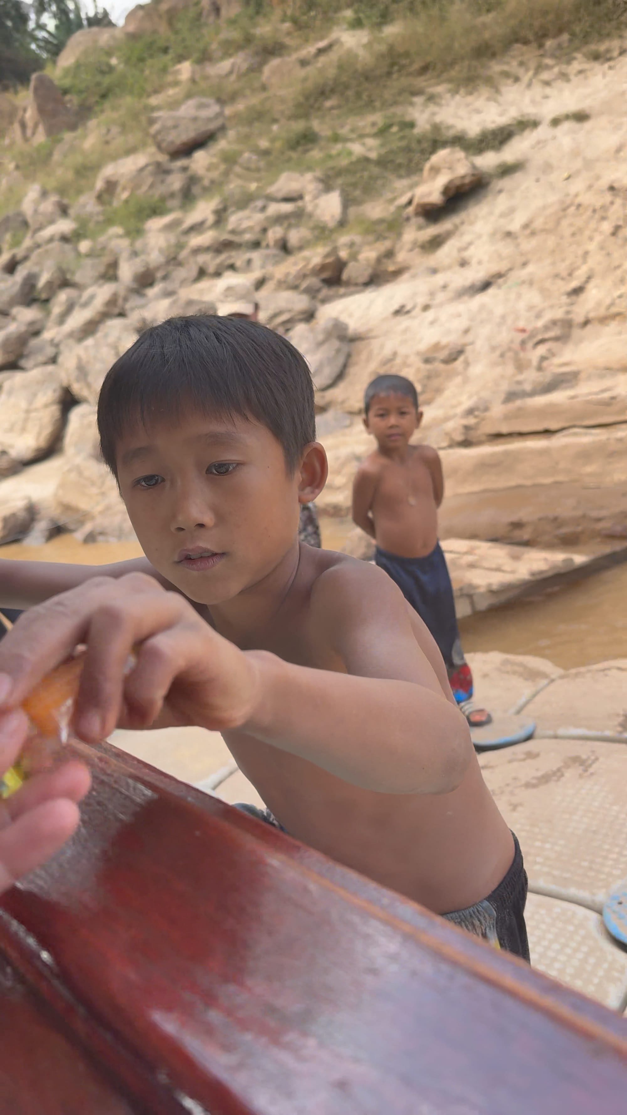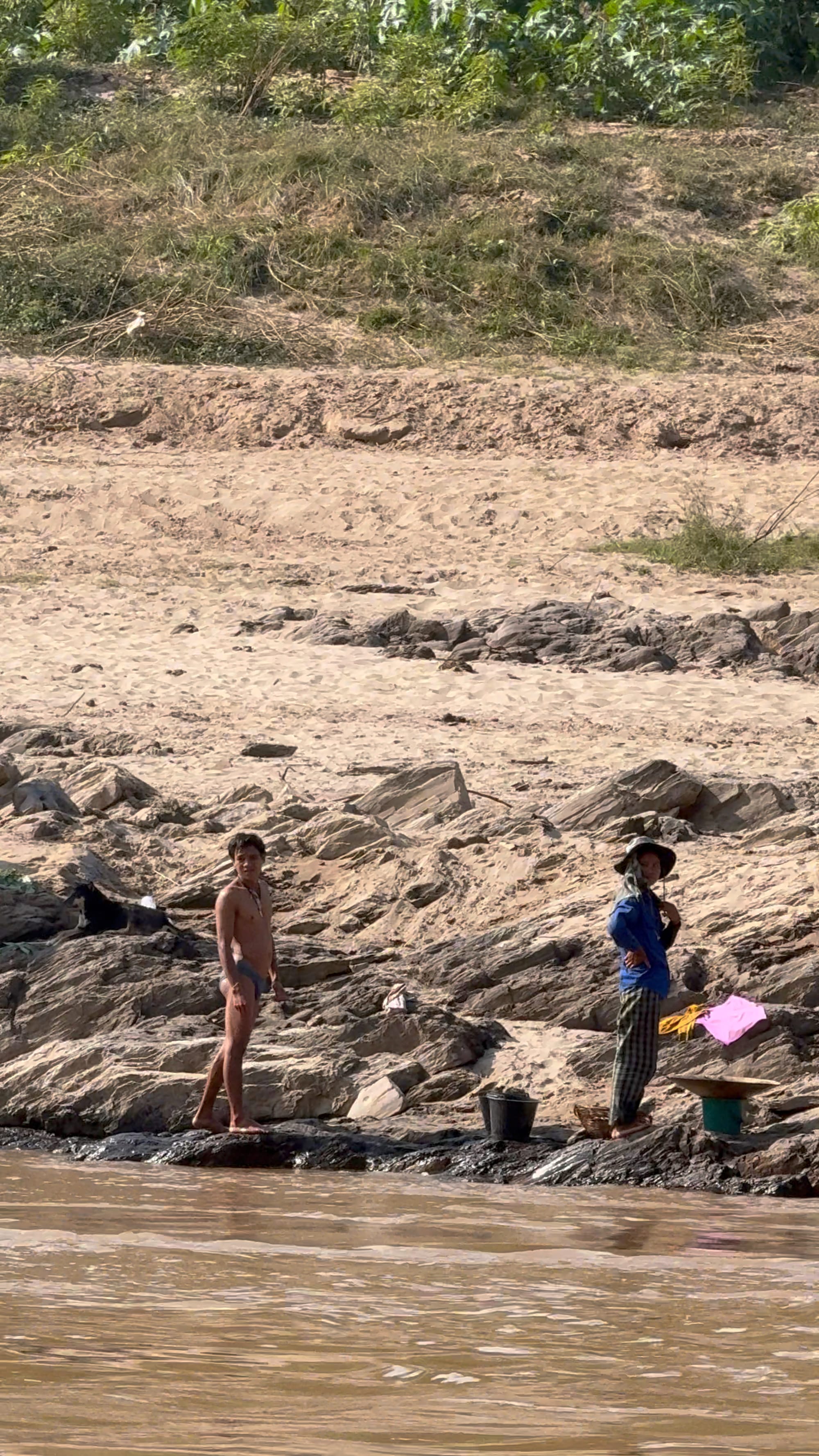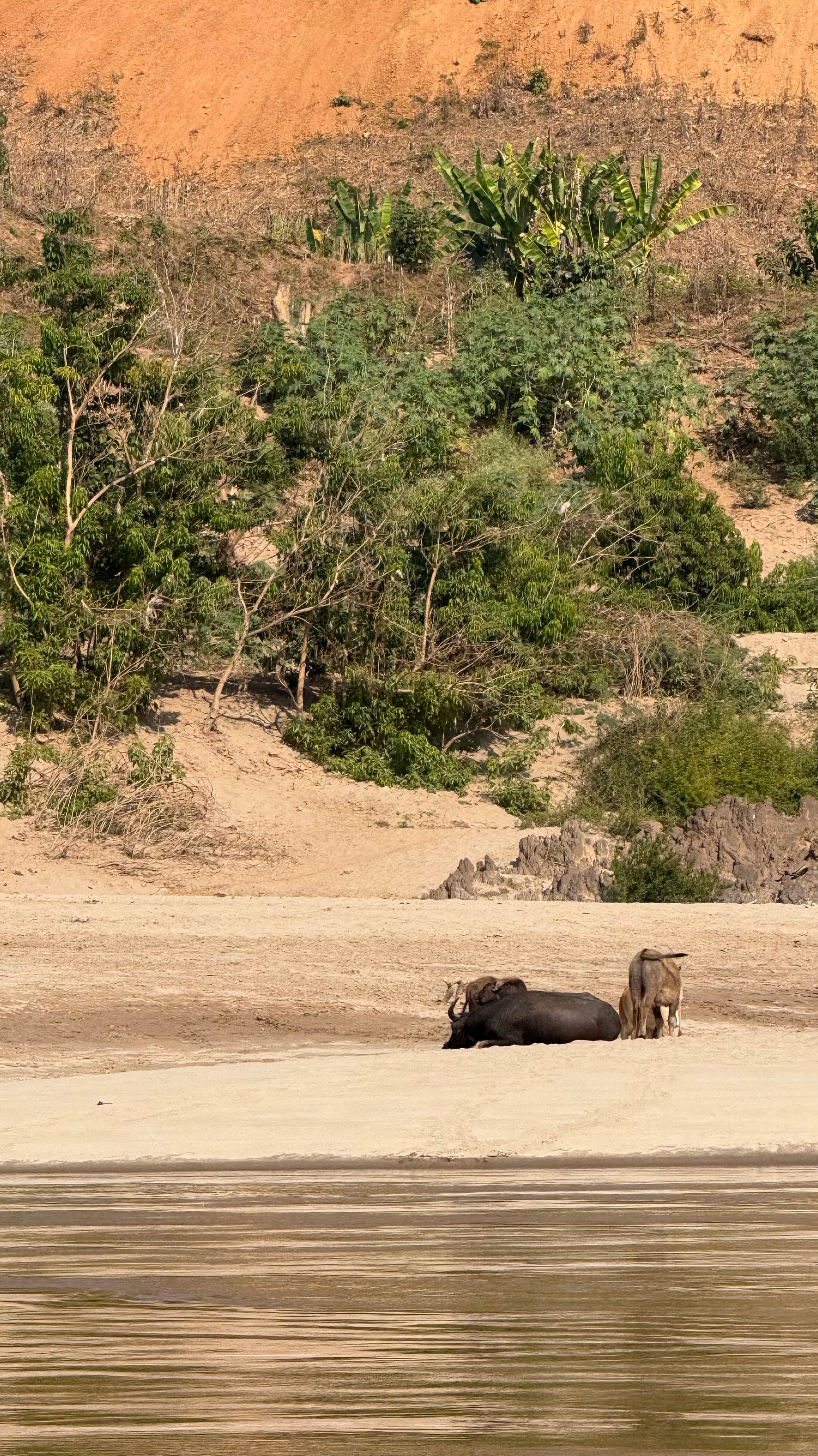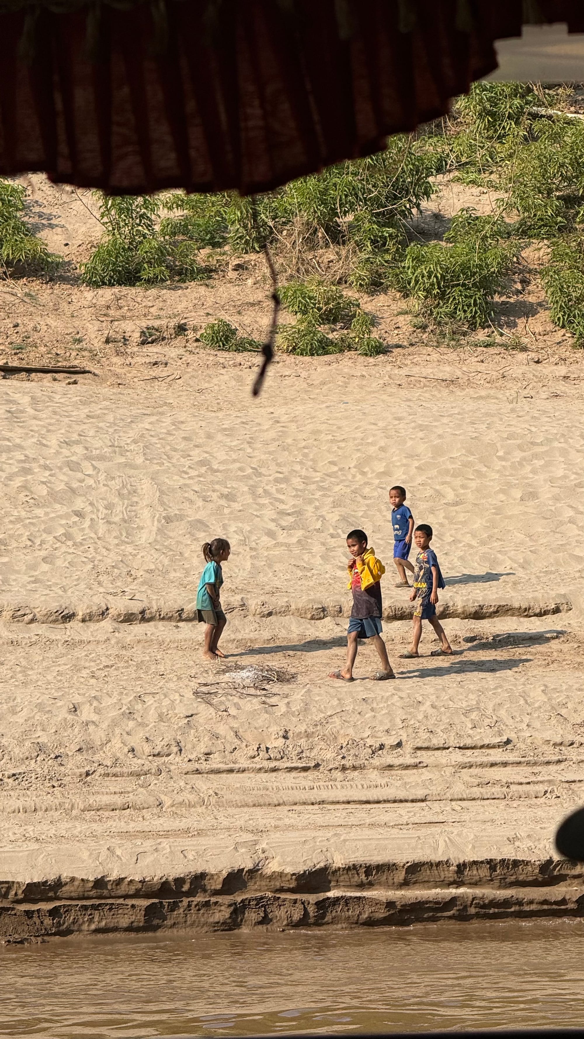 바깥 풍경이 꽤나 아름다웠다. 비가 많이 와서 토양이 많이 섞여들어간 동남아시아 지역의 강은 항상 탁한 갈색이다. 처음에는 더러워보일 수 있는데 익숙해지니 꽤나 이국적이고 멋들어져보이기까지 한다. 라오스는 1인당 GDP가 우리나라의 약 1/18 수준의 UN 지정 최빈국(the least developed country)에 속하는 나라, 우리나라 1960년대 후반, 1970년대 초반의 시골 느낌이랑 비슷하다고 한다. 메콩강의 탁한 물이 사람들이 샤워도 하고 가축의 물을 먹이고 빨래도 한다. 이 물은 때론 아이들의 놀이터가 되기도 한다. 라오스의 젖줄기인 셈이다. 아 참고로 메콩강에는 악어도 산다고 한다.