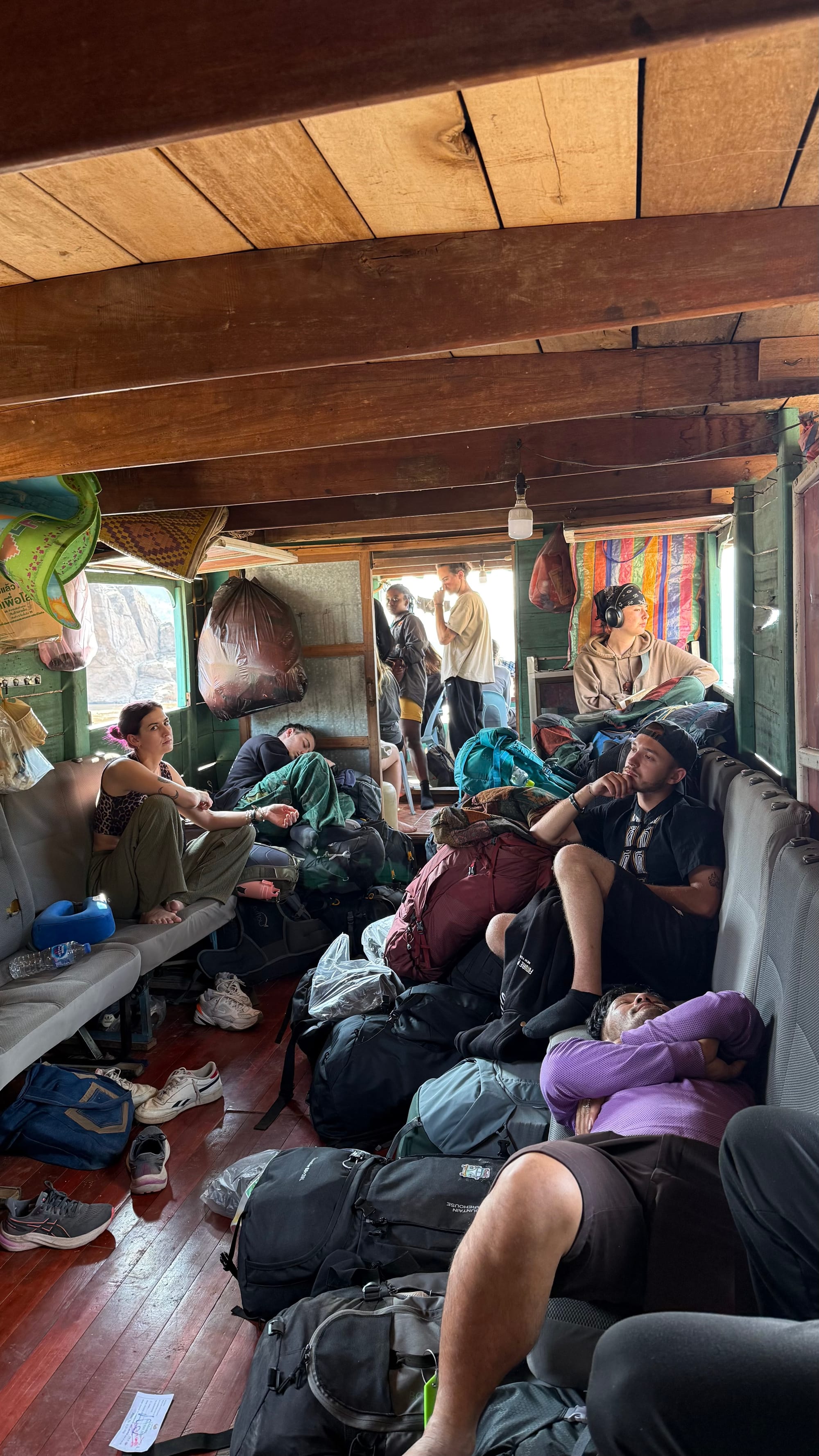 오늘 아침에 일어나서 에콰도르 아저씨와 함께 보트 선착장으로 갔다. 가격은 자전거 포함 550,000낍(36,800원)이고 자전거는 지붕 위에 싣는다. 이틀 내리 보트를 타는 것은 아니고 오후 5시 쯤, 중간에 있는 팍벵이라는 마을에 내려서 하루 자고 가야한다. 아침 9시 출발이라고 들었는데 10시 반이 다 되어서 출발을 했다. 최대한 사람을 가득 채워가려고 계속 기다리는 모양새인 듯 하다. 수백명은 탑승한 거 같은데 동양인은 나와 어떤 젊은 중국말을 쓰는 젊은 커플 두명이 다 인 거 같았다. 여행을 가려면 몇 박 며칠의 짧은 휴가밖에 낼 수 없는 동아시아권 나라 사람들은 이동 시간에만 이틀을 허비해야하는 이런 방식의 교통수단을 선택하기란 현실적으로 힘든 법이다. 반면 배낭여행 문화가 깊게 자리 잡고 있고 일년에 몇 달씩 휴가를 낼 수 있는 유럽식 기업문화 때문에 유럽인들은 온갖 희귀한 여행지에 전부 출몰한다.